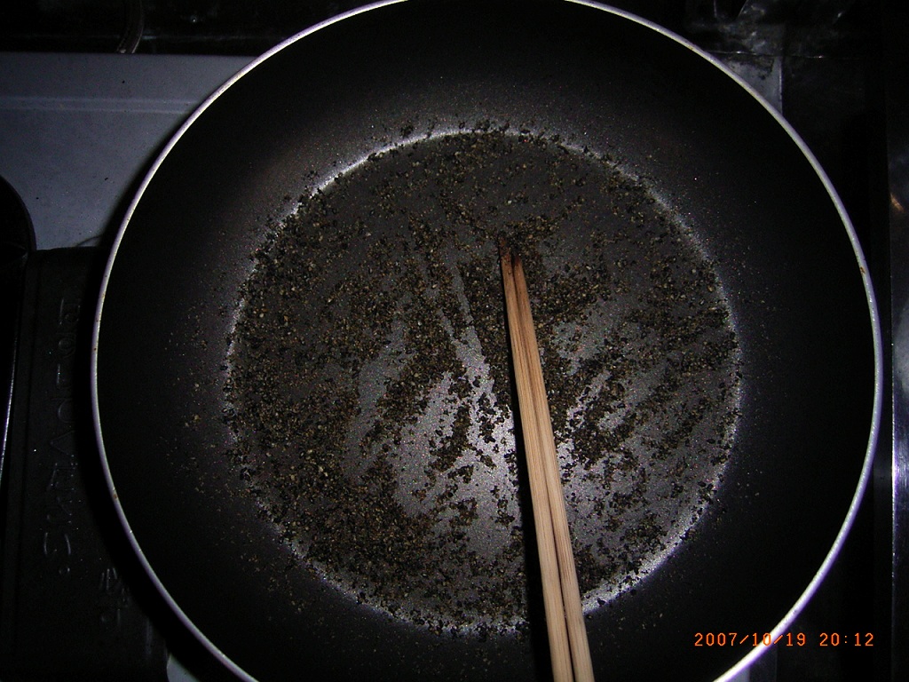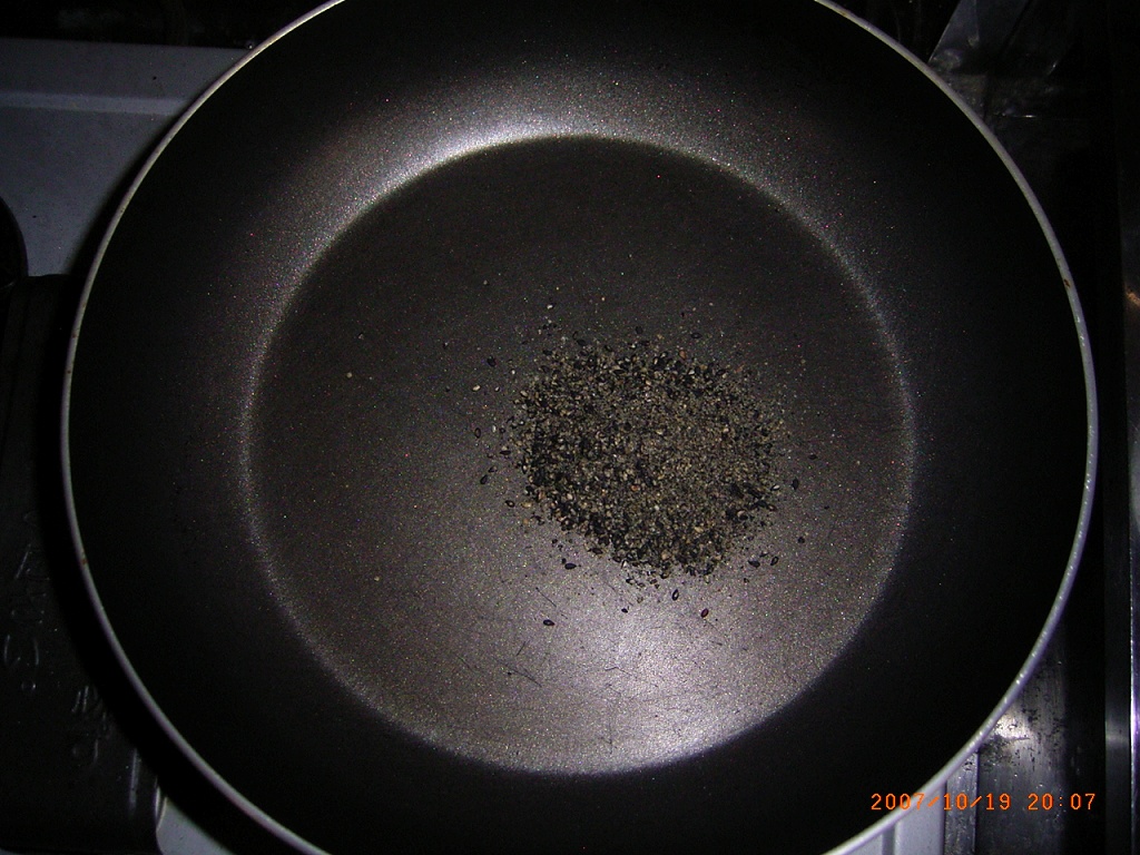 - 胡麻をフライパンで弱火で煎ります。