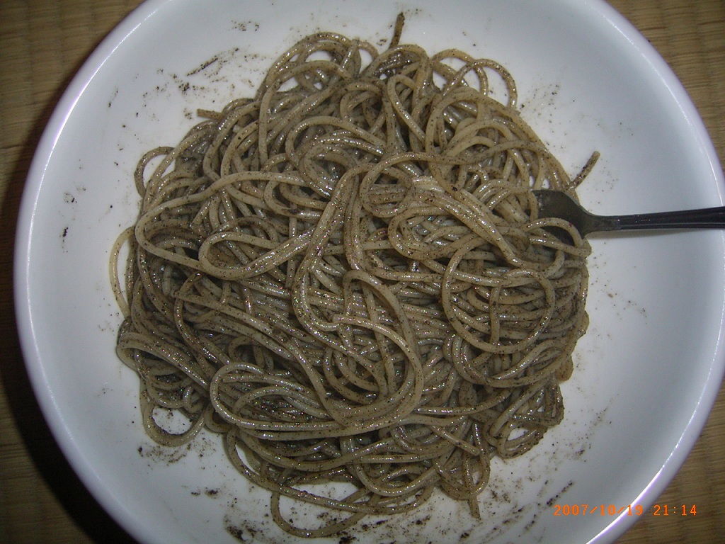 - スパゲッティが茹で上がったら、器に移し、ソースとよく和えて出来上がり。